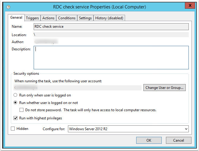 4. Create a task in Windiws "Task Scheduler" to run ".bat" file every 5 minutes. This will ensure that RDC job is restarted in case of connection errors or other unexpected crashes.